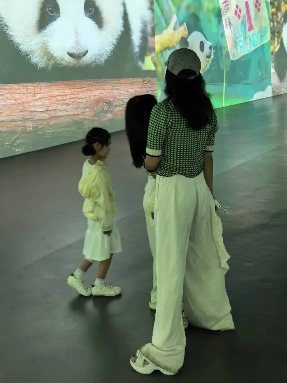 照片里,章子怡头戴棒球帽,身着绿色格纹上衣搭配白色长裤,一身休闲装扮尽显身材气质。女儿醒醒留着一头及腰长发,身穿白色T恤和长裤,模样清秀甜美。6岁的二胎儿子身着白色T恤和卡其色裤子,帅气可爱,颇有妈妈章子怡的神韵。一家三口在巨型熊猫前合影,女儿醒醒乖巧地站在妈妈身旁,儿子则靠在妈妈身上,摆出搞怪姿势,章子怡满脸幸福笑容,扶着儿子,画面十分温馨。
